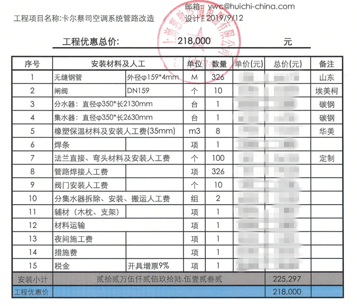 空調(diào)系統(tǒng)管道改造報價單