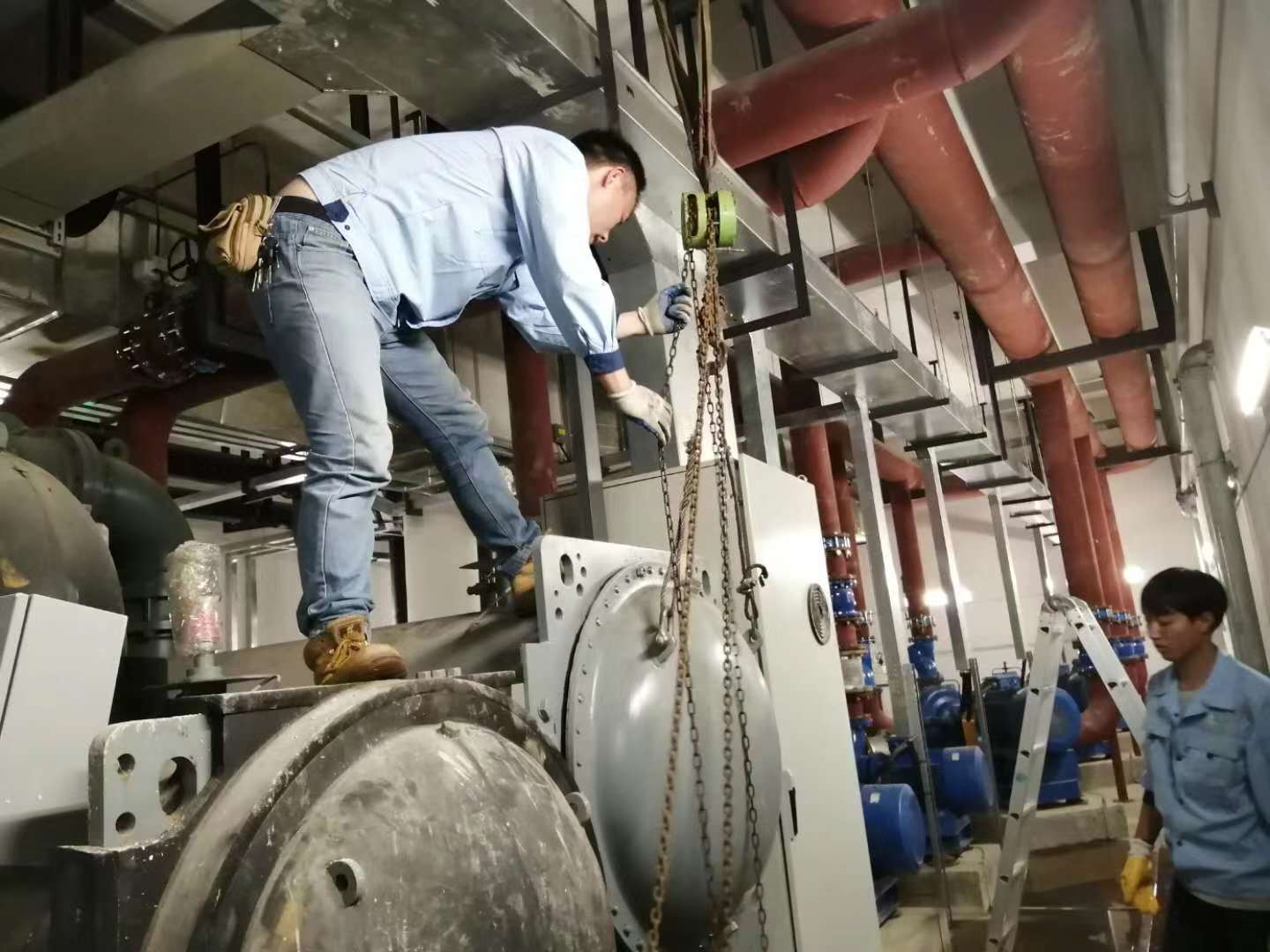 項目內容:嘉永南北干貨市場約克離心機組、螺桿機組、冷卻塔、風機盤管、排風機等空調系統設備清洗維保