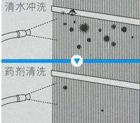 使用的專業(yè)藥劑為何分為"清洗劑"和"中和劑"? 因?yàn)槿ノ哿?qiáng)的清洗劑往往對(duì)翅片有較強(qiáng)的腐蝕性,而溫和型藥劑的清潔能力較弱。 惠馳使用的專業(yè)清洗劑保證了強(qiáng)有力的去污能力,而專業(yè)中和劑能夠中和清洗劑的腐蝕性,保證翅片不被腐蝕,做到去污,耐腐兩全其美。